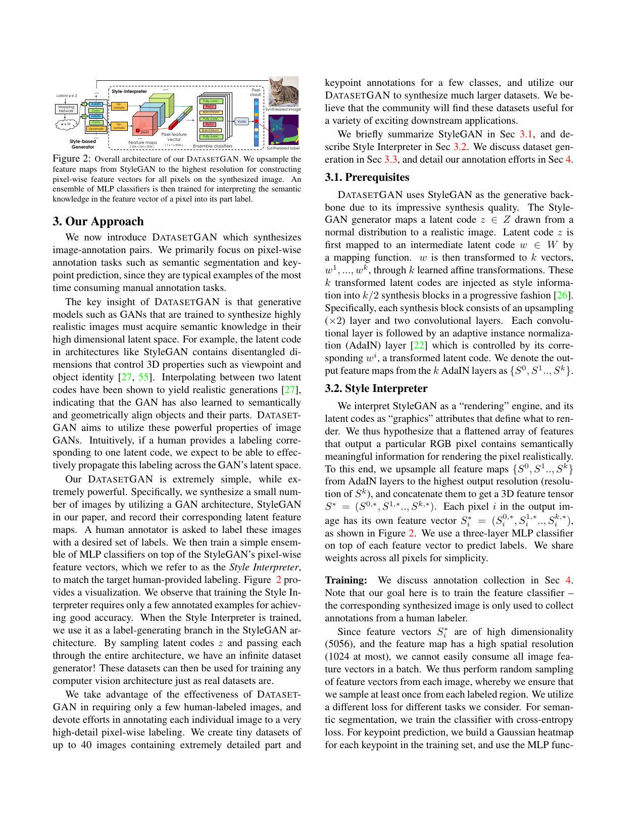 ✔️ 人間が行うのはごく少量の画像(16枚)に対する詳細なアノテーションを付与のみであり、これで無限のアノテーション付きデータセットを生成できる。